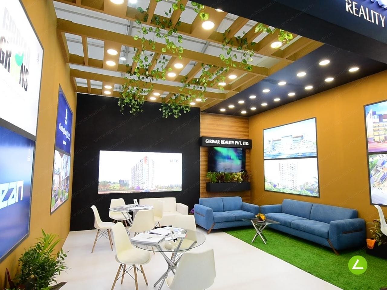Approach Media Pvt. Ltd., a renowned stall design company, collaborated with Girivar Reality Pvt. Ltd., one of Ahmedabad’s leading real estate groups, to create a visually captivating 36-square-meter exhibition stall design. With a focus on enhancing brand visibility and creating an immersive experience, this case study explores how Approach Media designed an eye-catching stall, incorporating backlit panel branding, overall brand visibility, and comfortable seating arrangements to effectively showcase Girivar Reality’s excellence in the real estate industry.