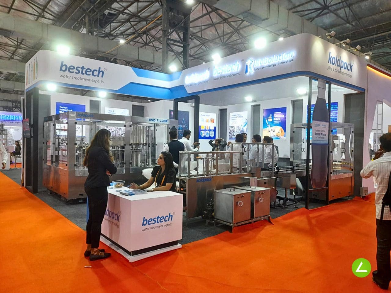 The focal point of the stall is the impressive display of Koldpack’s water filling machines. These machines, strategically placed from all sides, effectively showcase the company’s expertise in this field. Visitors can observe the machines in action and gain insights into their advanced features and capabilities. The dynamic display creates a sense of excitement and reinforces Koldpack’s position as a leading provider of water filling solutions.
