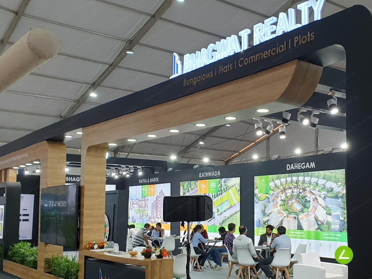 Understanding the importance of comfortable and functional seating, Approach Media designed well-appointed seating arrangements within the display stall. These seating areas provided visitors with a space to relax, engage in discussions, and have personalized consultations with Bhagwat Realty’s representatives. The seating arrangements were strategically placed to facilitate easy communication and foster a sense of comfort and luxury.