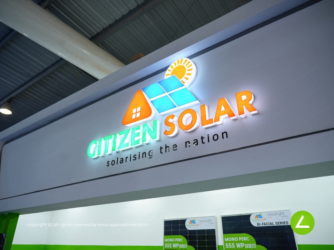 Approach Media Pvt. Ltd. is at the forefront of exhibition design, crafting spaces that not only showcase products but also embody the brand’s ethos. For Intersolar India, we partnered with Citizen Solar, a trailblazer in the solar energy sector, to create a booth that reflected their commitment to cutting-edge solar technology and sustainability.