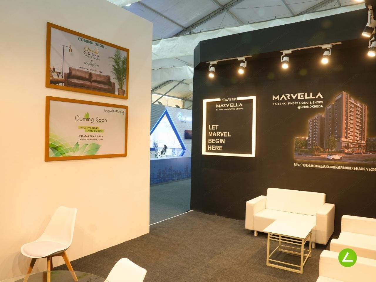The stall design placed emphasis on highlighting Swastik Group’s two prestigious projects. Acrylic typography and 3D graphics effects were employed to create visually stunning representations of these projects. A 65-inch TV screen showcased high-end 3D models of the properties, offering visitors an immersive experience and enabling them to envision the architectural brilliance and unique features of each project.