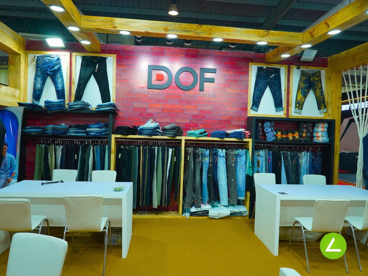 To enhance the product showcase experience, we’ve strategically placed ample product display stands and racks throughout the stall. This layout allows visitors to explore DOF’s clothing offerings from various angles. Additionally, a television screen is incorporated to showcase new clothing products in an engaging and dynamic manner. This multimedia element adds a modern touch to the traditional exhibition experience.