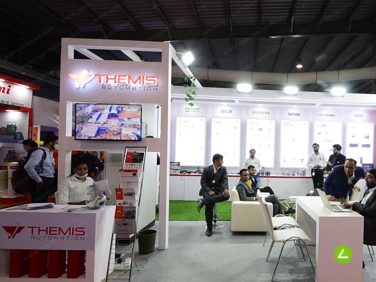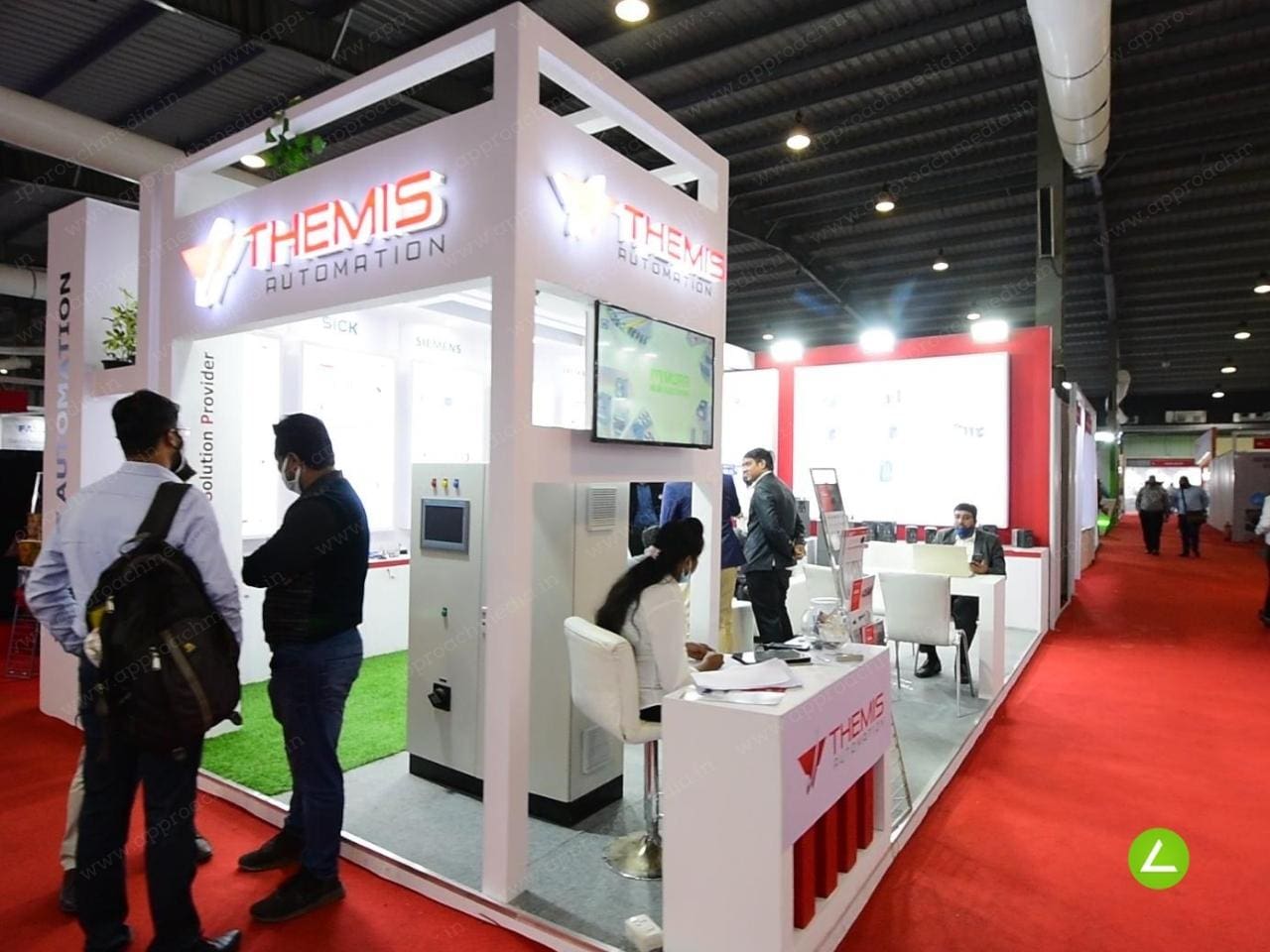 Themis Automation had a 45-square-meter floor space that served as a blank canvas for our design team to work with. AMPL’s idea was to develop a wide illuminated display with several product categories wall that would allow numerous attendees to comfortably roam around the exhibit because the major purpose was to present and enlighten attendees about the automation products. Themis Automation would also require space to present and demonstrate their products, which would necessitate the creation of multi-accessible stations at each corner of the exhibit to stimulate engagement and provide a venue for meaningful talks.